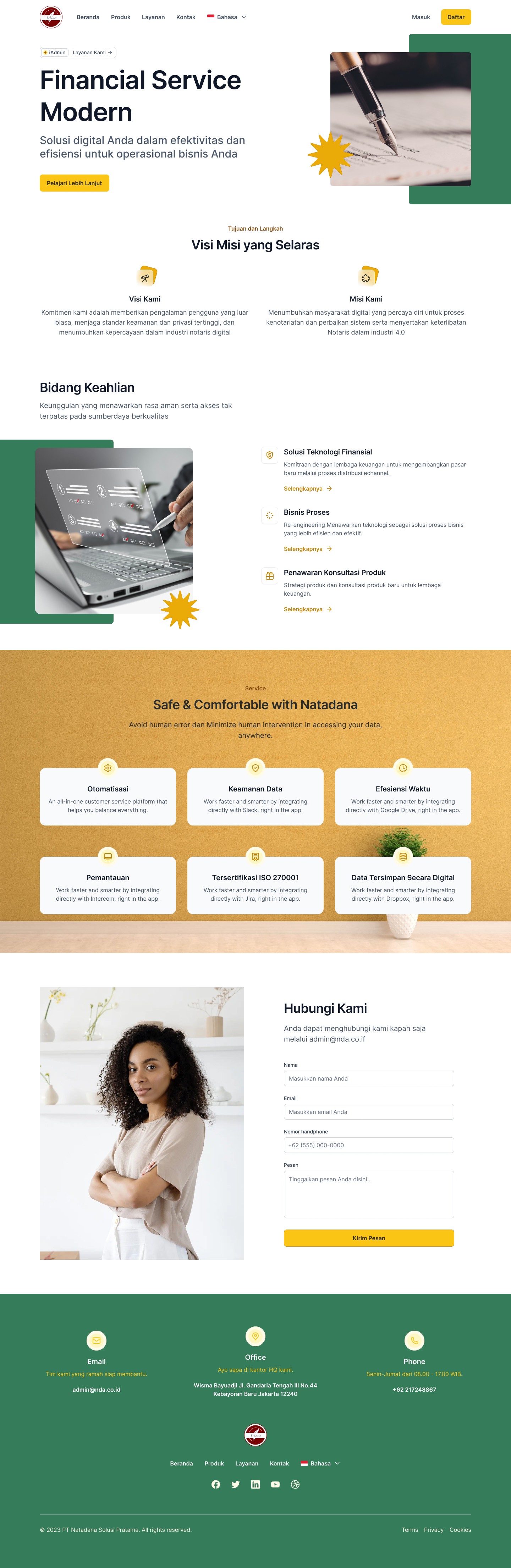 Clear call-to-actions (CTAs), contact access, and a streamlined information structure all contribute to a frictionless experience. Even with limited current content on the Indonesian domain, the framework supports further content scaling.